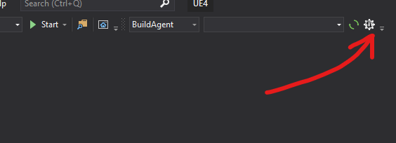- Click the cogwheel that's to the right of the newly added UnrealVS toolbar
